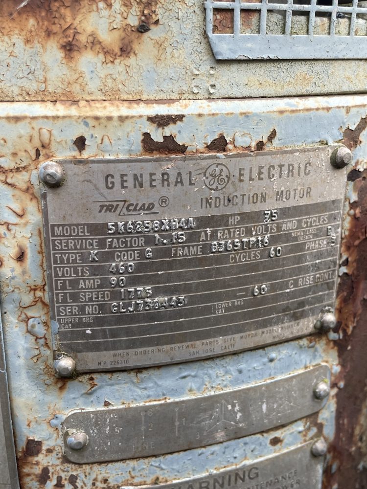 Model 5K6258XH4A, 75HP, 460Volt, 90amp, 1775rpm, frame B365TP16 SN: GLJ730443