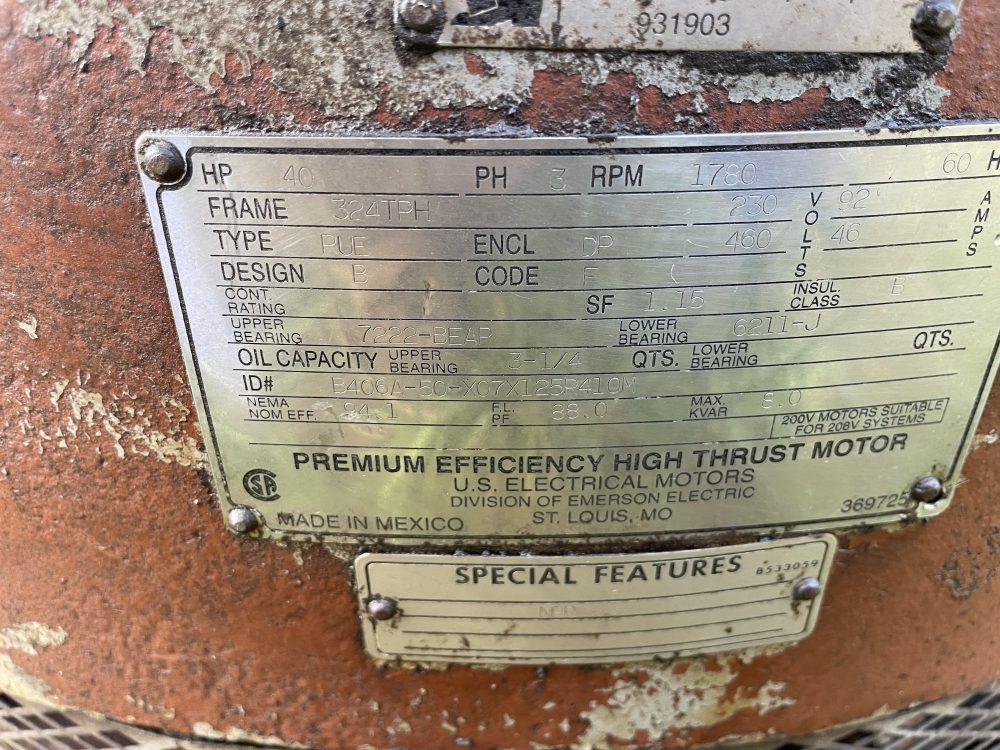 40HP, 3 Phase, 230/460 volts, 1780 rpm, frame: 324TPH, SN: B406A-50-X07X125R410M